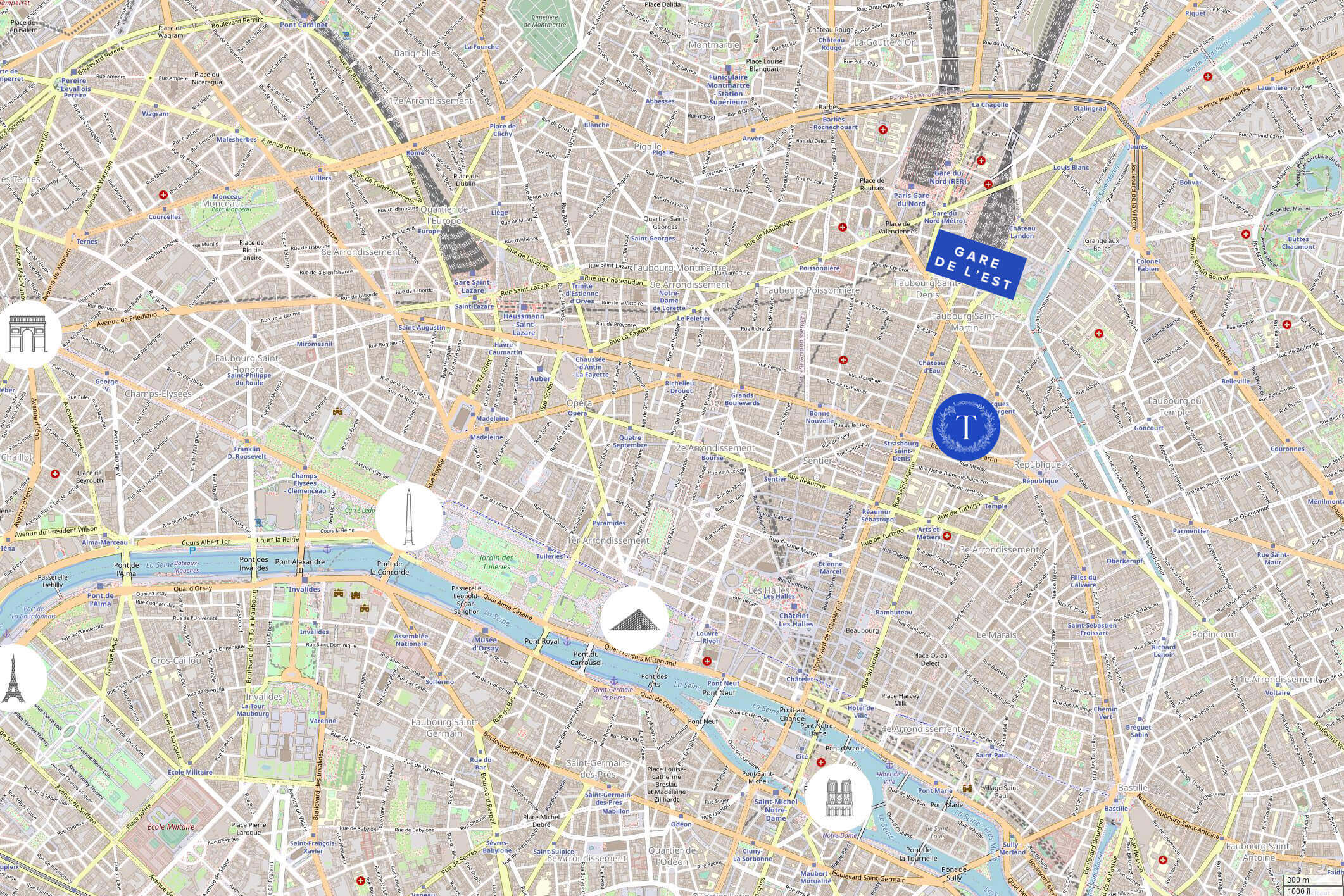 Carte de Paris - Proximité de l'Hôtel Taylor et de la Gare de l'Est